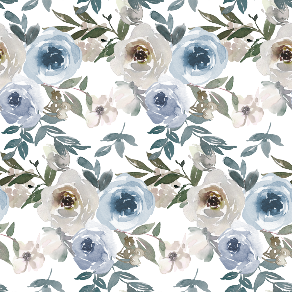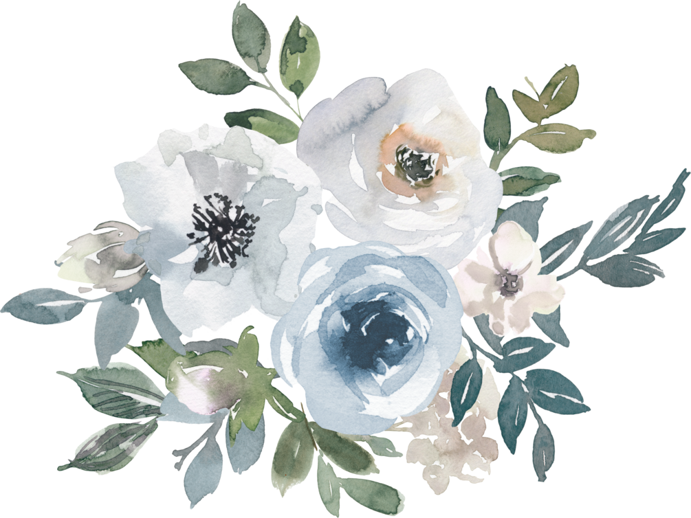 Watercolor Dusty Blue Floral Graphics